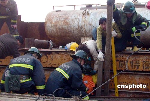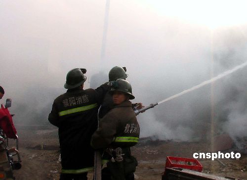1月19日上午,河南濮陽市一家食品加工點——涼皮作坊的常壓鍋爐發生爆炸,爐體炸飛20多米高,最后落在30米遠處的一個大雜院屋頂上,將房頂砸塌。濮陽市消防支隊華龍區大隊官兵接報趕到現場后,安全疏散群眾。炸飛鍋爐散落煤炭引起的火災在消防官兵的迅速處置下被撲滅,所幸事故未造成人員傷亡。中新社發 劉敬寬 攝