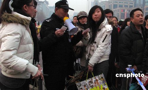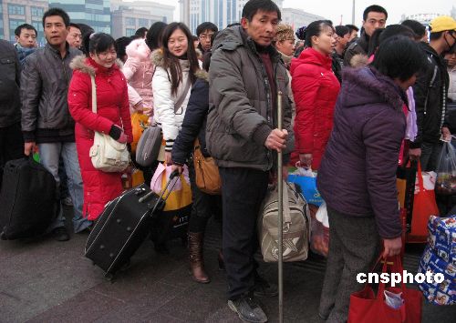 1月21日,北京車站廣場(chǎng),成千上萬的返鄉(xiāng)過春節(jié)的旅客,按秩序排隊(duì)進(jìn)站乘車回鄉(xiāng)過年農(nóng)歷已丑年(牛年)的春節(jié)。當(dāng)日是中國春運(yùn)第11天,中國鐵道部預(yù)計(jì),此后三天,鐵路將迎來節(jié)前客流的新最高峰。中新社發(fā) 鄒憲 攝