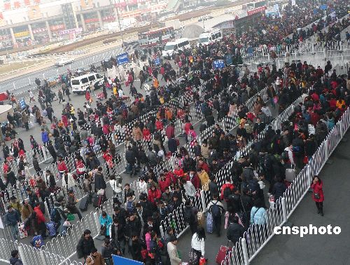 2009年1月21日,北京西站人頭攢動(dòng)、旅客如織。據(jù)北京西站方面透露,根據(jù)車次的售票情況看,21日單日上車客流將超過(guò)23萬(wàn)人次,達(dá)到本次春運(yùn)節(jié)前的峰值。中新社發(fā) 玉龍 攝