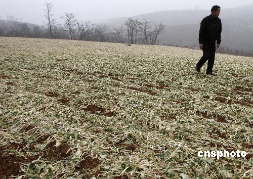 2月2日,河南省洛陽市宜陽縣趙堡鄉(xiāng)農民看著滿地干旱蔫黃的油菜,十分無奈。2月2日凌晨,當?shù)貧庀蟛块T實施了多批次人工增雨雪作業(yè),作業(yè)區(qū)內普降小雨,一定程度上緩解了當?shù)厣只痣U等級,但因為雨量過小,基本于旱情無補。 目前,河南省遭遇1951年以來的特大旱情,全省受旱面積已經(jīng)達到了63.1%,其中包括洛陽在內的豫西地區(qū)尤為嚴重。河南省氣象局1月29日15時發(fā)布干旱紅色預警,預計未來一周內河南大部分地區(qū)干旱仍將持續(xù)。 中新社發(fā) 張曉理 攝