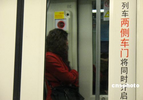 2009年2月3日,上海軌道交通人民廣場站,8號線通過列車同時開啟的雙側門實現乘客快速換乘。近日,上海軌道交通在8號線人民廣場往耀華路方向啟用新站臺,首次實施單列車雙側開門的客運組織方式,列車抵達人民廣場站后,同時開啟車廂的兩側車門,車內乘客可自行選擇就近一側站臺下車。這一新的客運組織方式使客流疏散速度明顯加快。據上海軌道交通建設指揮部透露,今年年內,軌道交通1號線人民廣場站也有望建成類似站臺,加快乘客流通速度。中新社發 張波wj 攝