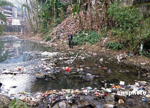 2月4日,重慶市云陽縣新陽鄉新陽小鎮,被各種垃圾污染后的新陽小河令人觸目驚心。據了解,新陽小河是長江三峽庫區的小支流,是飲用水源一級保護區,由于沒有垃圾處理站,當地居民及街道環衛人員習慣把垃圾直接倒在河邊及河中,洪水季節,這些垃圾將被洪水沖入三峽水庫。中新社發 劉君鳳 攝