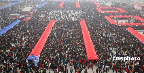 2月6日,“2009年河北省畢業(yè)生就業(yè)市場”在石家莊市東開發(fā)區(qū)火炬廣場舉行。這是河北省今年首場、也是全年規(guī)模最大的一次畢業(yè)生就業(yè)活動,招聘大會有1362家單位報名,提供近3萬個工作崗位,招聘單位和崗位數(shù)量均創(chuàng)該省歷史新高,預(yù)計將有10萬名求職者爭搶“飯碗”。