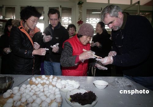 2月8日,中國傳統元宵節將至,北京東四四條胡同的一座四合院里,社區居民和同住在社區里的美國、法國友人一起慶祝元宵佳節,一起包湯圓,猜燈謎,做花燈,體驗中國傳統節日和民俗。中新社發 杜洋 攝