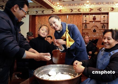 藏歷新年前夕,在中國國際航空公司擔任國際航線空姐職務的德慶央宗專程從北京帶著父母趕回拉薩,和親朋好友歡度藏歷新年。德慶央宗的父親曾供職于中國《民族畫報》,母親供職于中國藏學研究中心,他們一家已經多年沒有回西藏過藏歷新年。中新社發 廖攀 攝