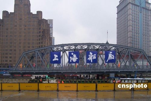 2月25日,經(jīng)過(guò)一年修繕的上海外白渡橋回到它已安然矗立百年的蘇州河河口,開(kāi)始復(fù)位工程。中新社發(fā) 周東潮 攝