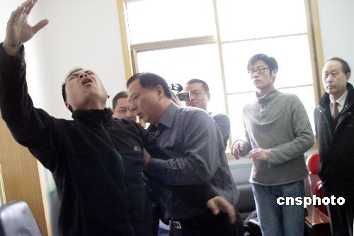 2月28日,年齡超過五十歲的企業人士蔡玉建,在河南鄭州演示“少林點穴功”,醫學專家現場觀看后稱,這不是什么神秘的東西,屬于人體打擊正常反應。大約一周前,經營生物保健產品的蔡玉建被當地報紙曝出擅長點穴,引起媒體和民眾的廣泛關注。28日,蔡玉建和其弟子釋延力的表演在鄭州市一家醫院上演,觀者有媒體、醫護人員和專家等。中新社發 李志全 攝