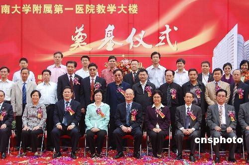 二月二十八日上午,暨南大學附屬第一醫院教學大樓奠基,國務院僑辦副主任趙陽與廣東省副省長雷于藍出席奠基典禮。中新社發 柯小軍 攝