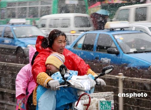 3月2日下午,江淮地區(qū)突降大雪,安徽宿州街頭路人在風(fēng)雪中艱難前行。中新社發(fā) 王玉明 攝