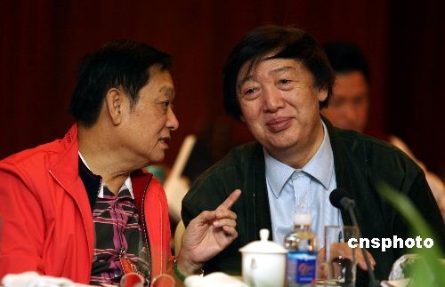 3月4日,全國政協(xié)十一屆二次會(huì)議進(jìn)行小組討論,中國文聯(lián)副主席馮驥才和中國作協(xié)一級(jí)美術(shù)師韓美林在文藝小組上交流意見。中新社發(fā) 傅丹丹 攝