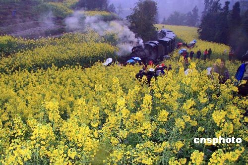 3月8日,來自各地的婦女游客,紛紛擁入四川樂山犍為感受嘉陽小火車的獨特魅力。嘉陽小火車的軌距僅76.2cm,被稱為“寸軌”,只有普通列車軌距的一半左右。它是世界上目前唯一尚存的窄軌客運蒸汽小火車,被稱為“原生態的工業革命活景觀”、“活著的18世紀工業革命博物館”。 中新社發 黃家明 攝