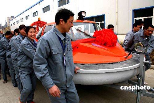 3月10日,國內首批國產氣墊船在東海縣成功下線后,4艘氣墊船已到達黃河內蒙古段的凌訊排除第一線的冰凌區,執行“破凌”任務。 中新社發 魏愛華 攝