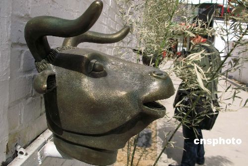 3月16日,北京“798”文化藝術產業(yè)創(chuàng)意區(qū)展出圓明園十二生肖獸首仿制品。中新社發(fā) 鄒憲 攝
