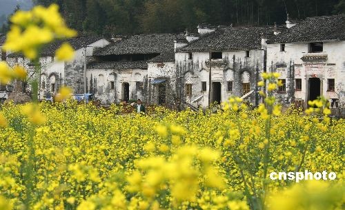 3月18日,江西婺源縣油菜花開。陽春三月,婺源縣10萬畝油菜花田陸續開放,成片的金黃色油菜花與粉墻黛瓦的徽民居組成一幅幅美麗的春日畫卷,吸引游客踏春賞花。中新社發 胡敦煌 攝