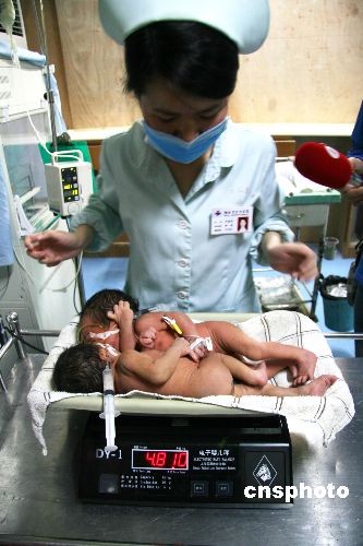 圖:湖南婁底連體女嬰病情危重