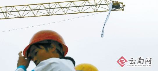 昨日(4月7日)上午,在昆明廣福路附近的某建筑工地上,百多名農民工聚集討薪,7名帶班班長被逼爬上數十米高的塔吊。對此,施工方解釋說,他們不是沒付工資,而是當初和工人簽合同時就約定了每月只付60%的工錢,而現在已經付到了85%了。