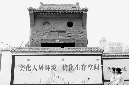 工地一位負責人講,考慮到這座門牌樓已經有上百年的歷史,就沒有隨著城中村改造整體拆除,暫時保護起來。“‘囧’?我還沒發現,難怪有很多人來這里轉悠。”他說,最近很多年輕人來看這座門牌樓,還有好多人拿著相機拍照。 ( 李卓洋)