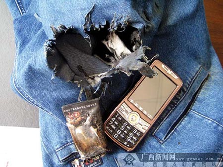 手機新電池炸傷消費者屁股 牛仔褲被炸出大洞