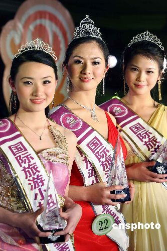啟動儀式后進行了2008國際旅游小姐大賽的直選賽,童鶴(中)、邱璐燔(右)和張靖暄分別獲得冠亞季軍,她們將與來其他分賽區的三甲選手參加于今年3月中旬在西塘舉行的中國總決賽。