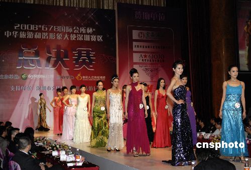 2009年1月4日晚,中華旅游和諧形象大使深圳賽區總決賽,在廣東深圳福田大中華喜來登酒店圓滿收官。本次大賽以 “東方神韻,世界和諧” 為主題,以倡導“健康生態旅游”為宗旨,整合深圳自然資源和人文內涵,推廣區域旅游,推動了旅游文化專業賽事向國際化發展。中新社發 閆晉 攝