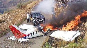 6月7日下午,南非約翰內(nèi)斯堡當(dāng)?shù)?0歲女子莫尼卡·布拉甘卡駕駛一輛福特小貨車在克魯吉斯多普機(jī)場(chǎng)附近的一條公路上行駛,汽車上還坐著另外一名叫做安娜·瓦林娜的女子和一名名叫托尼的男子。當(dāng)莫尼卡駕車行駛時(shí),她突然看到天空中有一架輕型飛機(jī),正朝她的小貨車筆直地俯沖下來!由于汽車行駛的公路非常狹窄,莫尼卡根本來不及避讓這架從天而降的輕型飛機(jī)!