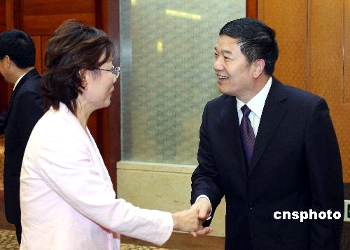 第七屆東盟華商投資西南項目推介會暨亞太華商論壇于6月4日至6月6日在昆明舉行。此次報名參會的五百余名嘉賓來自泰國、新加坡、馬來西亞、港澳臺等三十個國家和地區,參會人數與地區為歷屆之最。東盟華商投資西南項目推介會暨亞太華商論壇目前已成功舉辦六屆,累計簽署二十五個正式合同,總投資十六點七億美元。圖為6月4日,國僑辦副主任任啟亮(右)在昆明會見參加第七屆東盟華商投資西南項目推介會暨亞太華商論壇的知名華商領袖。 中新社發 劉冉陽 攝