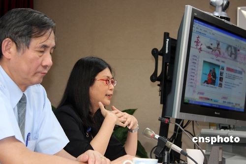 7月9日,臺(tái)灣“陸委會(huì)”正式啟用“關(guān)懷大陸配偶”網(wǎng)站專區(qū),希望向社會(huì)傳遞“牽手”精神,進(jìn)一步服務(wù)有大陸配偶的26萬(wàn)個(gè)臺(tái)灣家庭。圖為“陸委會(huì)”主委賴幸媛(右),與副主委兼發(fā)言人劉德勛一起出席當(dāng)日下午的記者會(huì)。中新社發(fā) 董會(huì)峰 攝