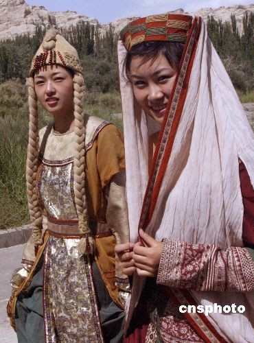 日前,在新疆哈密舉行的第六屆哈密瓜節發布會上主辦方宣布,2009-2010國際旅游小姐中國新疆賽區總決賽將于7月下旬在哈密市舉行。是次大賽將時尚文化理念融于底蘊深厚的瓜鄉文化,展現獨具瓜鄉特色的民俗風情、人文歷史、自然風光。屆時,哈密市區花車巡游、走進瓜節賽瓜會、瓜節走進瓜節開幕式、走進東天山風景名勝區、走進哈密王府、走進五堡魔鬼城、走進哈密重點工程、走進哈密福利院等賽事主題系列活動亦相繼展開。圖為新疆佳麗身穿民族服飾展示風采。中新社發 錢興強 攝