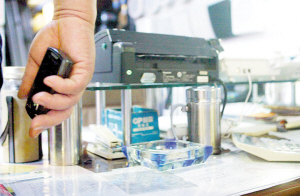 這家被小偷光顧的商店,在南開區白堤路上的一家音響廣場內。商店的柜臺和辦公桌都安置在了長方形的店鋪內。因為專賣監控攝像裝置,所以這家店內裝滿了大大小小的攝像頭,而且這些攝像頭還全部運轉著,尤其是放貴重物品的辦公桌附近,就安上了兩個攝像頭。商店的工作人員說,發覺手機丟失后,就立即打開保存下來的錄像,手機丟失的過程全被拍了下來。