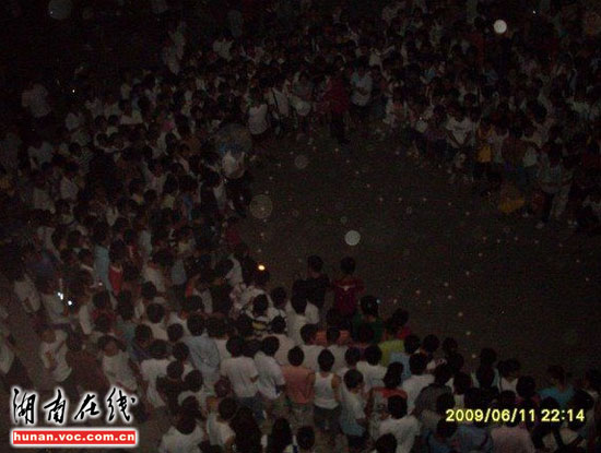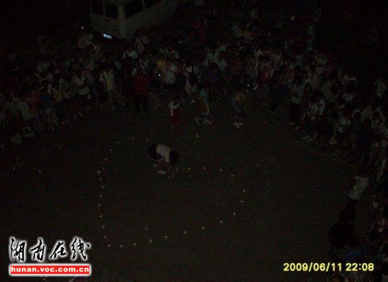圖片時間憲攝拍攝于6月11日,發(fā)帖網(wǎng)友“D222”稱,晚上十點左右,山東某高校一男生宿舍樓外,一名女生用蠟燭擺成兩個串在一起的心型圖案,向該樓一名男生示愛。當時正是下晚自習時間,這一大膽舉動吸引了上千人圍觀。“此女自始至終神情淡定,慢慢的用蠟燭擺好心形,并不時地向男宿舍樓上瞻望,還大聲喊男生的名字。樓下樓上的起哄聲、喝彩聲此起彼伏。”網(wǎng)友“D222”在帖子里這樣描述。據(jù)知情網(wǎng)友透露,男生自始至終都沒有露面。