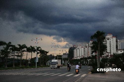 2009年6月25日,海南東部瓊海市上空烏云翻滾。今年第四號(hào)熱帶風(fēng)暴“浪卡”目前正在中沙群島偏東方約350公里的南海東部海面上,中心附近最大風(fēng)力8級(jí),預(yù)計(jì)未來24小時(shí)內(nèi),“浪卡”中心以15公里左右的時(shí)速向西北方向移動(dòng),強(qiáng)度將有所加強(qiáng)。 中新社發(fā) 蒙鐘德 攝