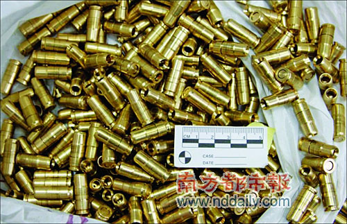 “制造子彈的四個人是五金廠的模具師,他們有制作的技術,只要有圖紙,很容易就能造出來。”陳子攀介紹,嫌犯還從廣西弄來黑色火藥,裝上去就可以射擊,威力很大,“只比真子彈稍微差一點而已。”