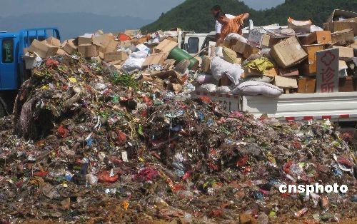7月14日,浙江義烏在塔山垃圾填埋場(chǎng)集中填埋從無證行醫(yī)診所沒收的30余噸藥品。據(jù)了解,從2005年3月份國務(wù)院辦公廳下發(fā)《關(guān)于開展打擊商業(yè)欺詐專項(xiàng)行動(dòng)的通知》和衛(wèi)生部等七部門聯(lián)合下發(fā)《打擊非法行醫(yī)專項(xiàng)行動(dòng)方案》以來,義烏市共取締無證行醫(yī)1400余家,沒收藥品60余噸,醫(yī)療器械3000余件,價(jià)值總計(jì)人民幣500萬余元。中新社發(fā) 朱麗珍 攝