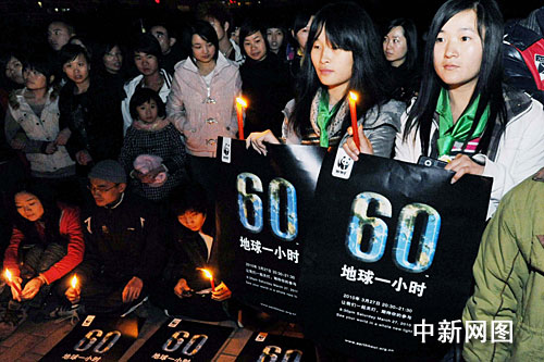 中新網(wǎng)3月27日電 福建省環(huán)保志愿者協(xié)會(huì)27日晚在福州主辦以“熄掉燈光、點(diǎn)亮未來”為主題的“地球一小時(shí)”活動(dòng),吸引福州市民、環(huán)保志愿者以及高校學(xué)生近200人參加。