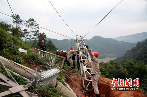 災情就是命令,有著“福建電力鐵軍”光榮稱號的福建省第二電力建設公司快速啟動應急預案,迅速組織160名搶險隊員連夜集結到搶險現場,搶險物資、設備、器材、車輛陸續到達。在搶險隊員頑強拼搏下,用帶電跨越架改造的應急鐵塔,替代倒塌的水泥桿塔,完成搶修任務并送電成功,確保了鷹廈電氣化鐵路荊西牽引變的用電安全。