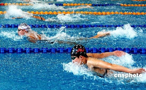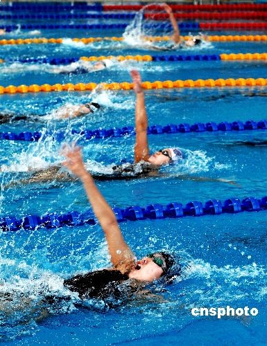 6月25日,為期五天的第十一屆全運(yùn)會(huì)游泳預(yù)選賽暨2009年全國(guó)青年游泳錦標(biāo)賽落下帷幕。本次比賽為第十一屆全運(yùn)會(huì)游泳決賽的資格賽,分別在天津和大連兩個(gè)賽區(qū)舉行,達(dá)標(biāo)運(yùn)動(dòng)員取得了將于今年十月份舉行的全運(yùn)會(huì)游泳決賽的資格。天津賽區(qū)有江蘇、浙江、安徽、福建、廣東等14支代表隊(duì)的252名選手報(bào)名參賽;大連賽區(qū)有北京、遼寧、上海、貴州、解放軍等12支代表隊(duì)的314名選手報(bào)名參賽。中新社發(fā) 劉德斌 攝