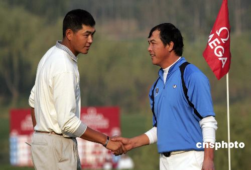 10月21日,歐米茄高爾夫球錦標賽北京站比賽收桿,老將張連偉四輪比賽后,以總成績283桿、低于標準桿5桿的成績奪得冠軍。中新社發(fā) 張宇 攝