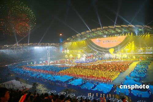 中國第六屆全國城市運動會在湖北武漢體育中心開幕。本屆城運會共設立24個比賽大項、27個分項、288個小項,參賽運動員達6351人,為歷屆城運會之最。本屆城運會將于11月3日閉幕。據悉,城運會是中國每4年舉辦一次的全國大型綜合性體育盛會。中新社發 宋建春 攝