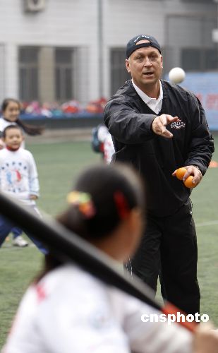 10月30日,入選棒球名人堂的前美國職業(yè)棒球運動員卡爾·瑞普金在北京西單小學(xué)教小學(xué)生打棒球。這是他以美國國務(wù)院派遣的美國公共外交特使的身份進(jìn)行的首次出訪。瑞普金將訪問北京、上海和廣州,在這三個城市中,瑞普金將與青少年進(jìn)行接觸,相互進(jìn)行文化交流,同時為更多的新手講解棒球運動。卡爾·瑞普金是棒球運動有史以來空前的鐵人紀(jì)錄保持者,也是美國棒球名人堂成員之一。他是棒球史上僅有的取得400次本壘打和擊中3000次的八位知名球員之一。2007年7月29日,他以史上最高得票數(shù)入選美國棒球名人堂。 中新社發(fā) 杜洋 攝