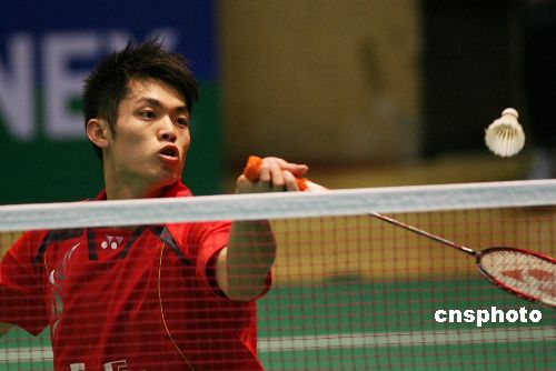 十一月二十九日,二零零七中國香港羽毛球超級賽進行正賽第二輪的比賽,頭號種子林丹以二比零戰勝日本選手佐藤翔治,輕松晉級。中新社發 武仲林 攝