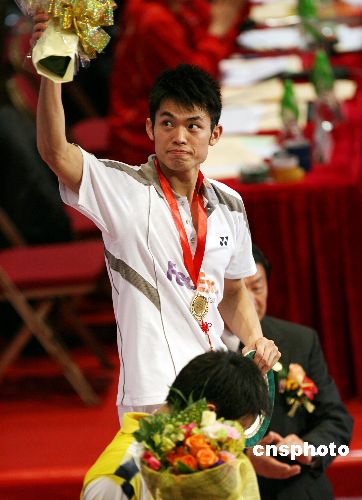 十二月二日,頭號種子林丹在二零零七中國香港羽毛球超級賽決賽中以二比一戰勝馬來西亞名將李宗偉,奪得冠軍。中新社發 武仲林 攝