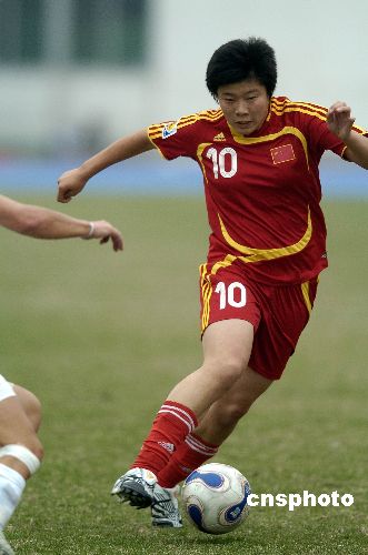 2007年12月19日下午,中國女足在廣州黃埔體育中心體育場與新西蘭女足熱身賽中以4比0大勝。中新社發 吳峻 攝