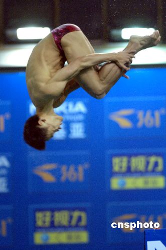 1月10日,2008年奧運會跳水選拔賽(濟南站)全部結束。在最后一天的比賽中,北京選手林躍獲得男子10米跳臺冠軍。奧運冠軍胡佳僅獲得第4名。中新社發 張侃 攝