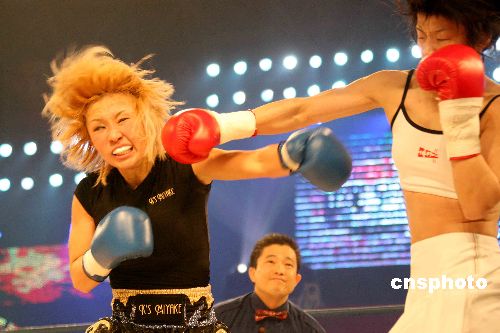 1月26日,河南電視臺(tái)2008《武林風(fēng)》第二屆環(huán)球拳王爭(zhēng)霸賽在洛陽打響。 來自日本、葡萄牙、巴西、韓國、伊朗5個(gè)國家的7名不同膚色、不同打法、不同級(jí)別的搏擊高手挑戰(zhàn)中國功夫。中新社發(fā) 曾憲平 攝
