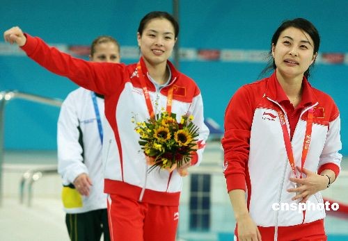 2月23日,“好運北京”國際泳聯第16屆跳水世界杯進入第五日,在女子3米跳板決賽中,吳敏霞在最后一跳頂住壓力,發揮出色,以超越隊友郭晶晶3.60分的成績贏得金牌,這也是她獲得的第2枚跳水世界杯個人項目金牌,郭晶晶以387.75分的總分摘得銀牌,澳大利亞選手斯特拉頓(Sharleen Stratton)以250.79的總分摘得銅牌。中新社發 富田 攝