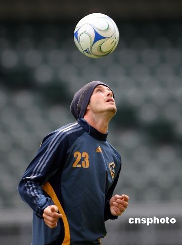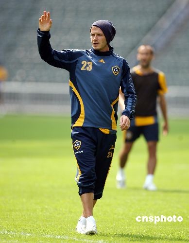 三月八日,英國足球巨星、現(xiàn)效力于美國洛杉磯銀河隊(duì)的貝克漢姆在香港大球場與球隊(duì)一起訓(xùn)練,備戰(zhàn)九日將舉行的表演賽。中新社發(fā) 武仲林 攝