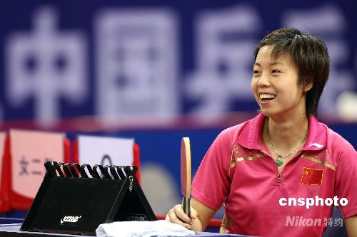 7月28日,中國(guó)乒乓球隊(duì)備戰(zhàn)奧運(yùn)熱身賽在無錫體育中心拉開帷幕。男子團(tuán)體分4隊(duì)進(jìn)行淘汰賽,女子團(tuán)體分4個(gè)隊(duì)進(jìn)行單循環(huán)比賽。此次熱身賽還設(shè)立了男子單打擂臺(tái)賽。圖為張怡寧比賽前在裁判席上笑看隊(duì)友訓(xùn)練。中新社發(fā) 盛佳鵬 攝