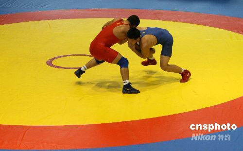 9月27日,運動員在進行自由式摔跤比賽。當日,全國男子自由式摔跤冠軍賽在河南許昌開賽,來自全國各地的340余名運動員在為期3天的比賽中展開角逐,比賽采用單敗淘汰全復活賽制,分別進行資格賽、淘汰賽等。本次摔跤比賽由國家體育總局舉摔柔運動管理中心主辦,河南省體育局和許昌市體育局承辦。中新社發 牛書培 攝