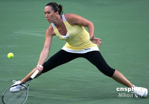 9月27日,2008年中國(guó)網(wǎng)球公開(kāi)賽開(kāi)始女單半決賽爭(zhēng)奪。頭號(hào)種子塞爾維亞美女揚(yáng)科維奇以6-4、2-6、6-4的比分戰(zhàn)勝俄羅斯紅粉5號(hào)種子茲沃娜列娃,率先晉級(jí)決賽。中新社發(fā) 富田 攝