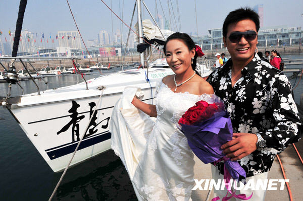 10月15日,北京奧運會女子RS-X級帆板金牌獲得者殷劍重返給她帶來好運的青島奧帆中心拍攝婚紗照。新婚在即,她特意選擇這片自己征戰(zhàn)并獲得成功的賽場上與親密愛人留下“事業(yè)見證愛情”的美好紀念。